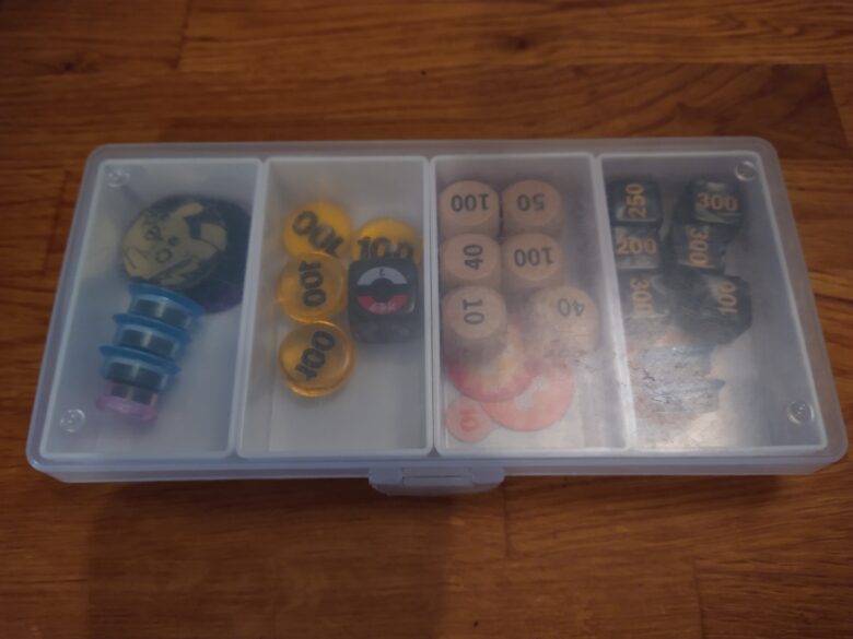 ジムバトルした方分かると思うんですが、ジムバトルの席って空きスペースが無いです。左右の人と自分のプレイマットが接してしまうイメージですね。そういう詰め詰めの状態だと、このサイズのダメカンケースを置くのがだいぶしんどくなります。なのでもうちょいコンパクトさが求められます